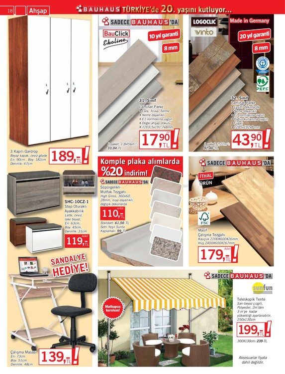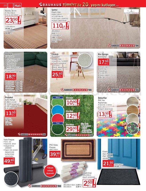 Kampanyalarımızı, avantajlı fiyatlarımızı, yeni ürünlerimizi ve promosyonlarımızı sizlere duyurmak amacıyla yayınladığımız Bauhaus dergi, siz değerli müşterilerimizle onbeş günde bir buluşuyor. Bauhaus’un kaliteli ve geniş ürün yelpazesinden sizler için seçtiklerimizin yer aldığı dergimizi, tüm Bauhaus’larda bulabilirsiniz.