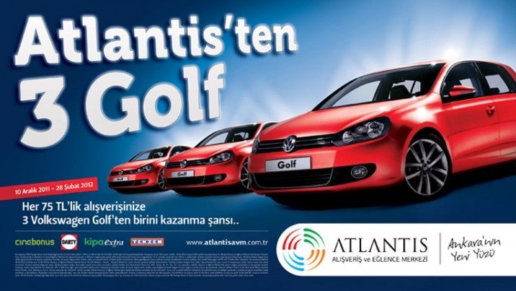 Atlantis Alışveriş ve Eğlence Merkezi yeni yılda 3 VW Golf hediye ediyor. 10 Aralık 2011-28 Şubat 2012 tarihleri arasında Atlantis Alışveriş ve Eğlence Merkezi, 75 TL’lik alışveriş yapan tüm ziyaretçilerine […]