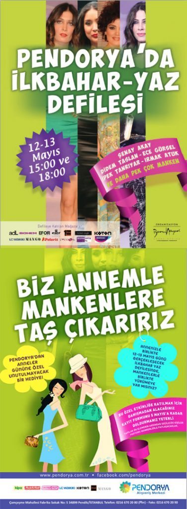 Şenay Akay, Didem Taslan, Ece Gürsel, İpek Tanrıyar ve daha pek çok mankenin katılımıyla 2012 ilkbahar ve yaz modası Pendorya’da miserfirerimizin beğenisine sunulacak.