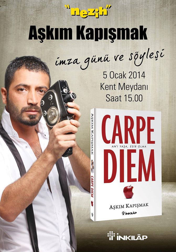 Aşkım Kapışmak Karpe Diem Kitabı için Kent Meydanı Aşışveriş Merkezinde 5 Ocak saat 15:00’de imza günü ve söyleşi düzenliyor.